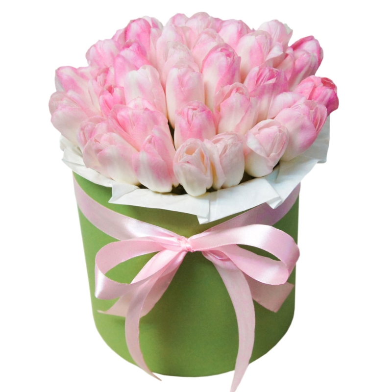 Букет из 35 розовых тюльпанов в коробке