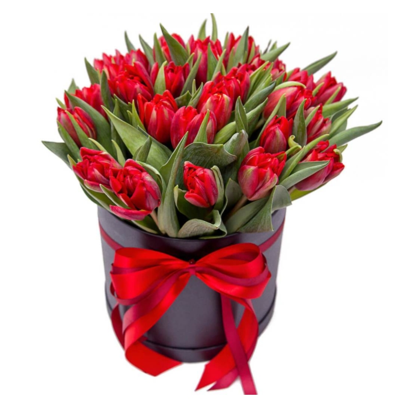 Букет из 29 красных тюльпанов в коробке