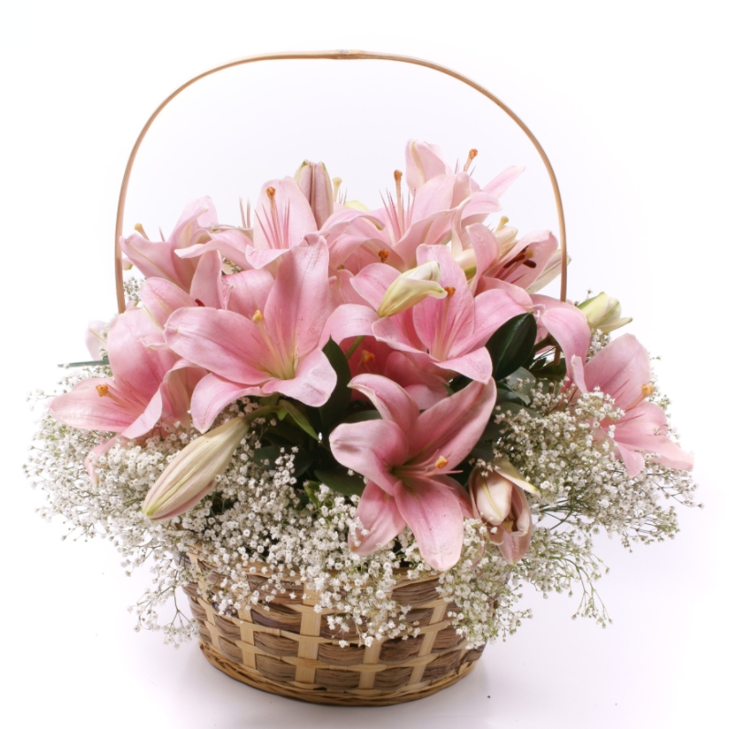 Букет из розовых лилий в корзине