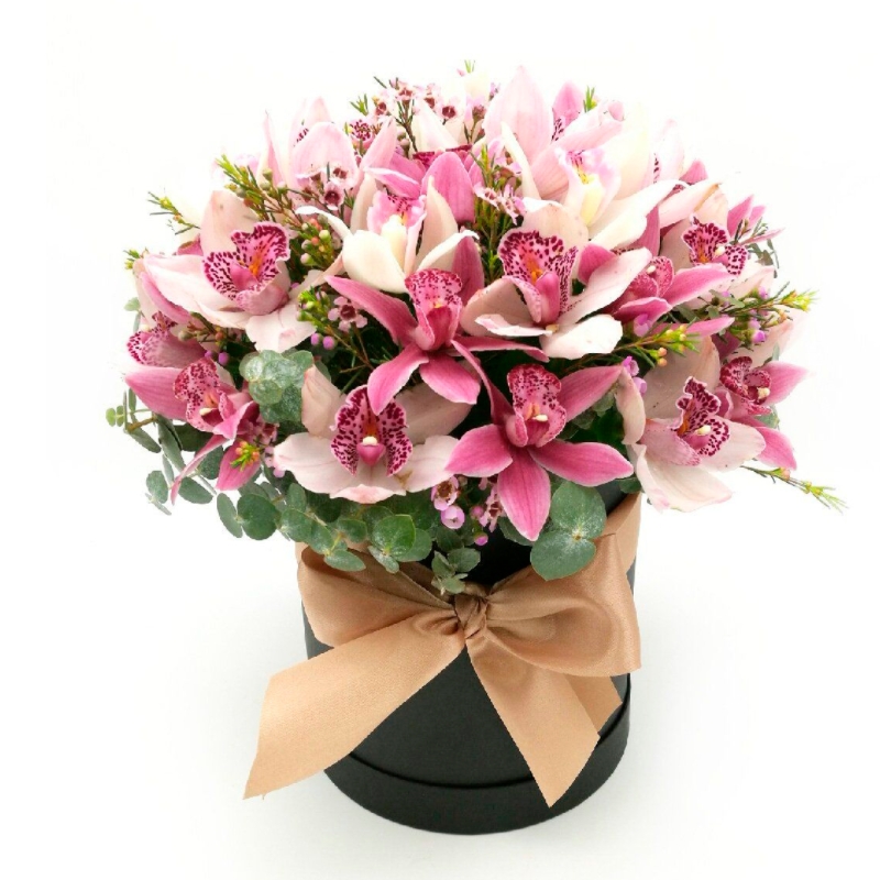 Букет из орхидей в коробке "Шампань"