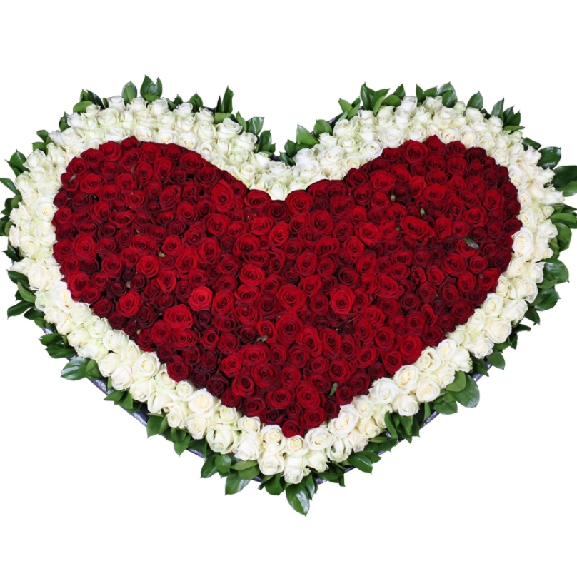 Сердце из 251 красной и белой розы