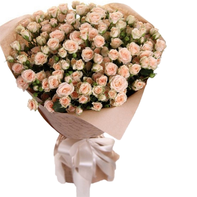 Букет из 35 кустовых кремовых роз в крафте.